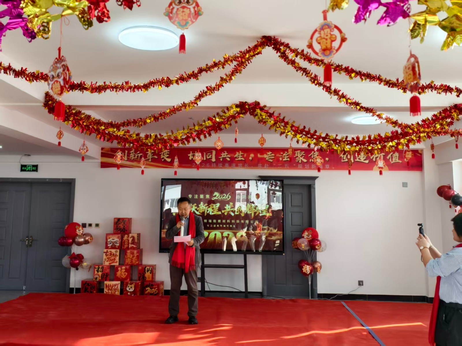 [辽宁,丹东] – [2026年2月12日] 瑞气盈门,春意渐浓。2月12日,辽宁威科特瑞阻燃材料科技有限公司在公司三楼活动室隆重举办2026年度新春年会。本次年会以 “创新革变、协同共生、专注聚焦、创造价值” 为主题,全体百余名员工齐聚一堂。在欢声笑语中总结过往硕果,在载歌载舞中擘画未来蓝图。