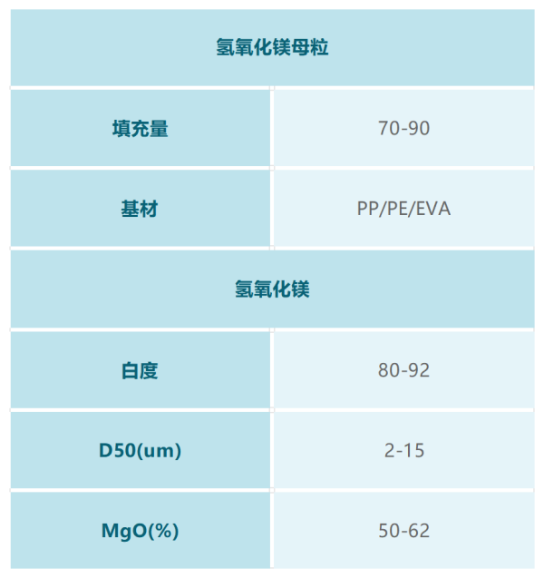 氢氧化镁母粒:氢氧化镁母粒是一种以氢氧化镁为主要成分的功能性母粒,通常由高纯度的氢氧化镁经过表面改性处理后,与PE、PP等的载体树脂及其他添加剂混合制成。通过将氢氧化镁制成母粒形式,解决了氢氧化镁粉体在应用中存在的分散性差、与基体材料相容性不好等问题。