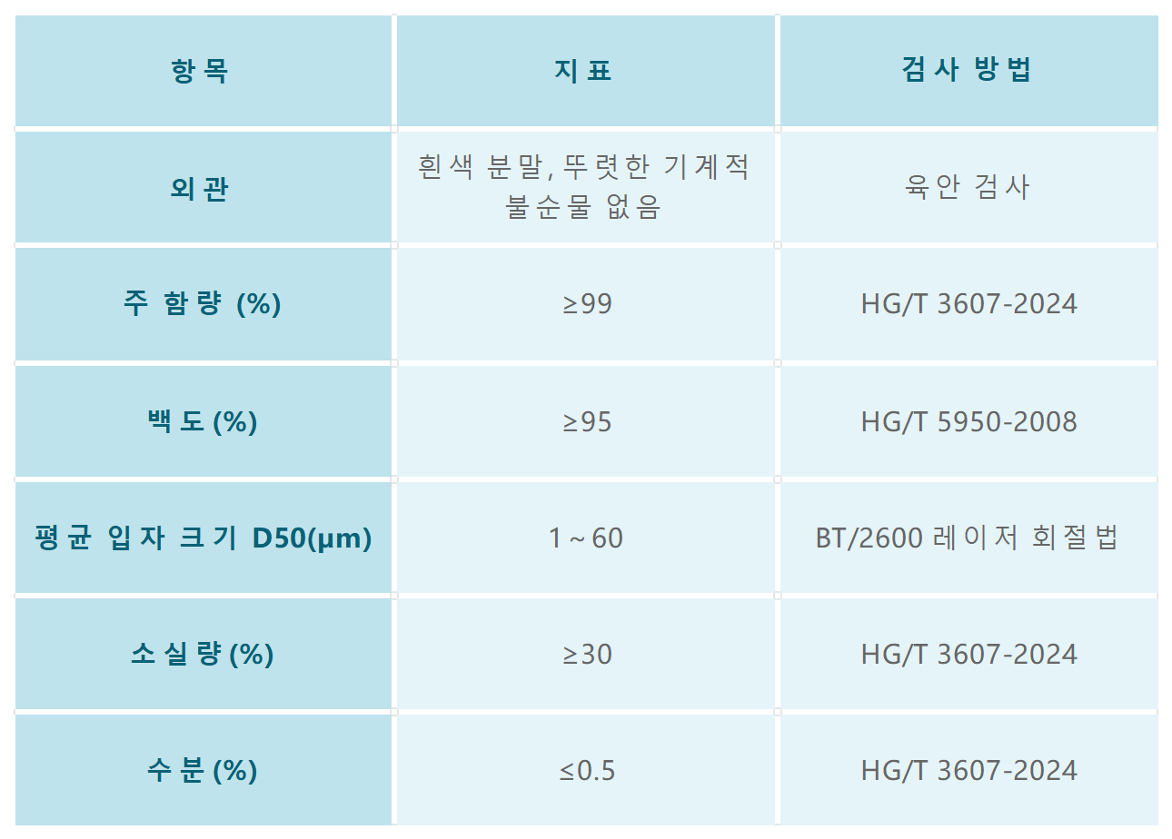 고순도 수산화마그네슘 VC-X는 화학적 합성법으로 제조된 무기 화합물로, 극히 낮은 불순물 함량과 높은 백도 및 순도를 동시에 갖추어 우수한 성능을 나타냅니다. 이는 플라스틱 및 고무 제품의 우수한 난연제로 사용되며, 다양한 고급 애플리케이션 요구를 충족시킬 수 있습니다.