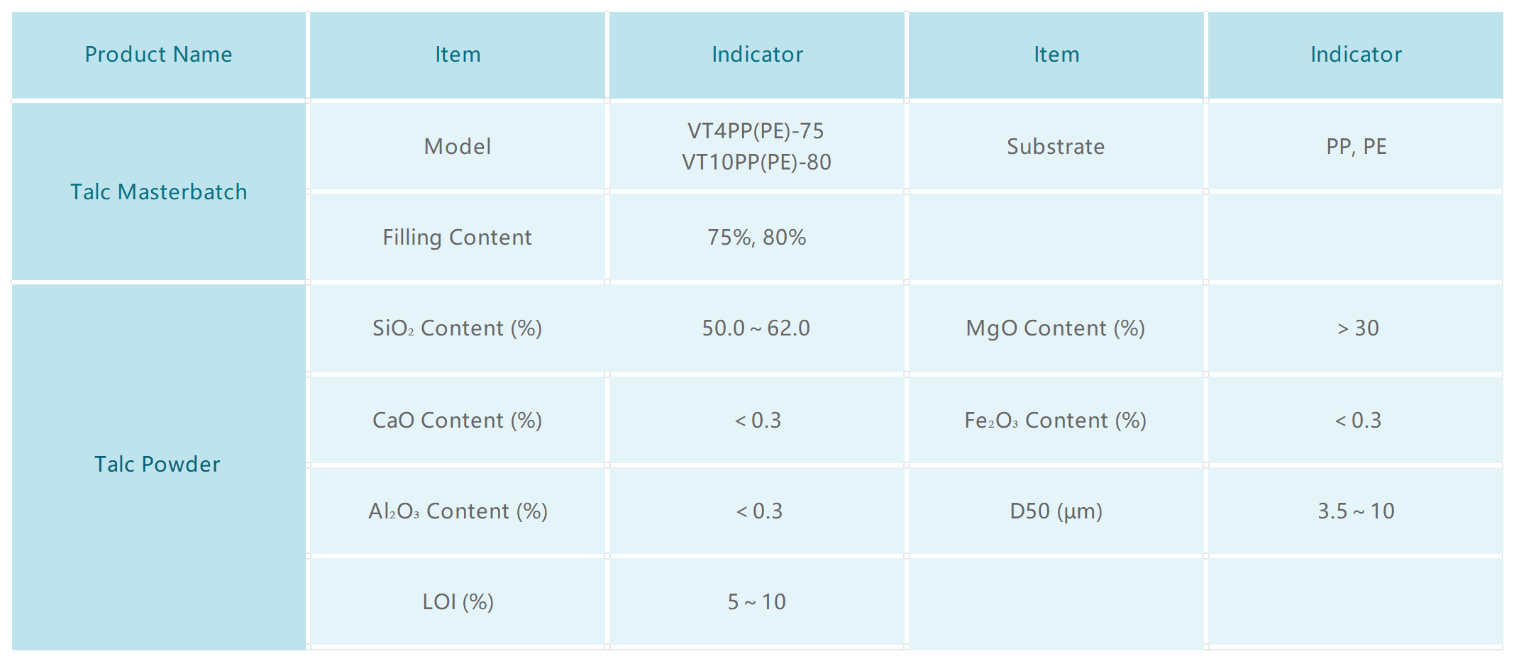 Talc powder functional masterbatch is an excellent high-filling modified filler product for plastics. It is primarily composed of talc powder and high-melting-point copolymerized polypropylene/polyethylene, mixed and granulated to form pellets. Compared with talc powder, the talc masterbatch offers superior processing performance, addresses the issue of talc powder dispersion, improves the working environment in modified engineering plastic processing plants, effectively enhances production efficiency, and reduces material loss.
